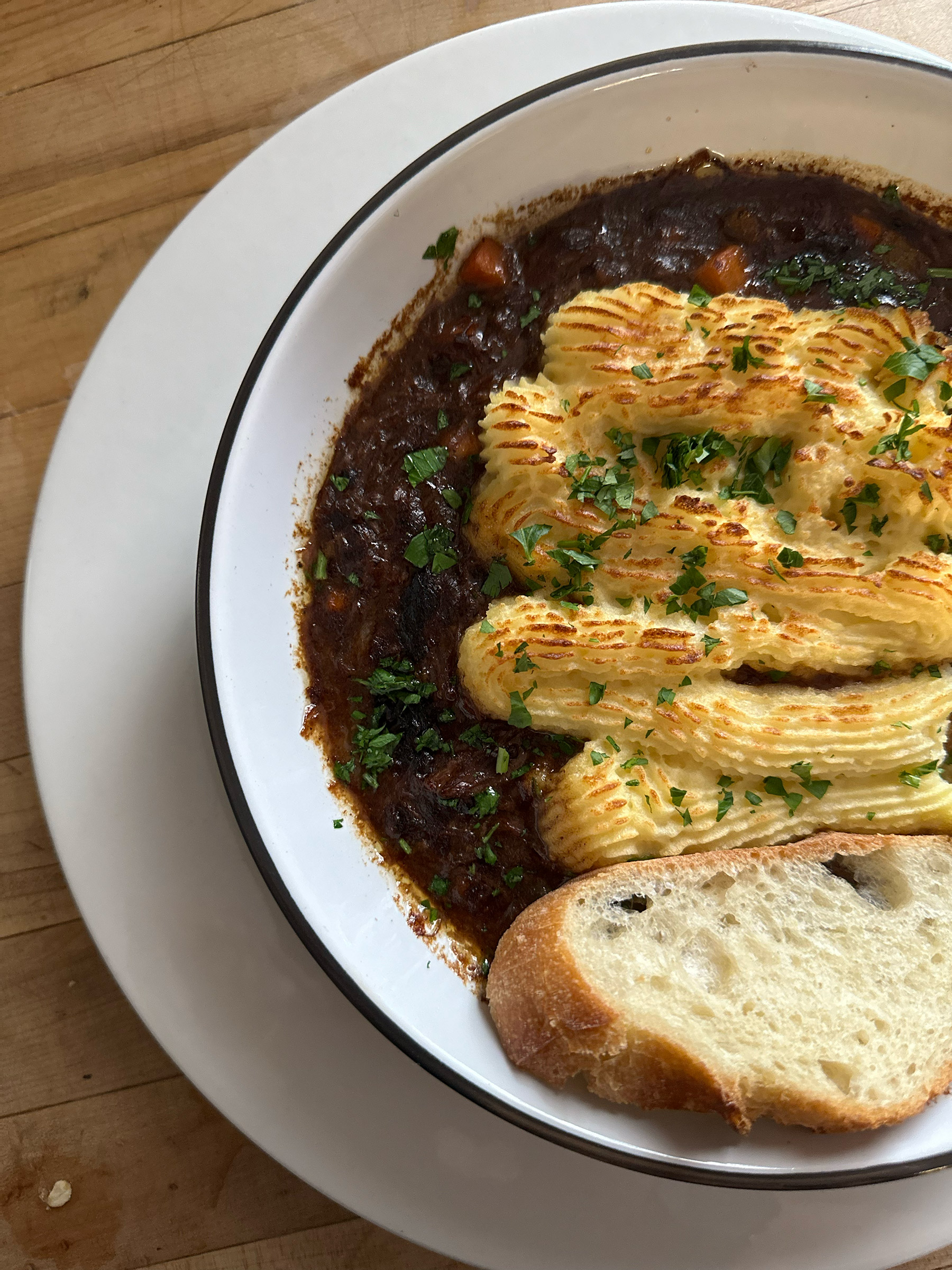 Braised beef short rib, mac and cheese, pickled onion, BBQ sauce